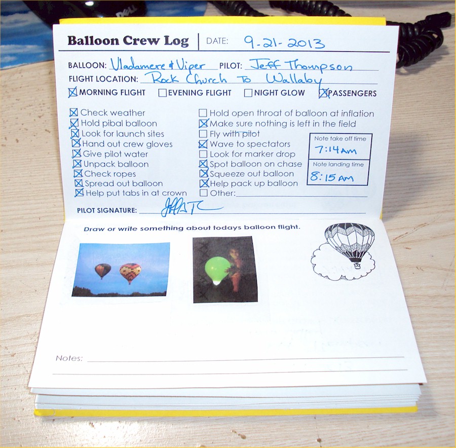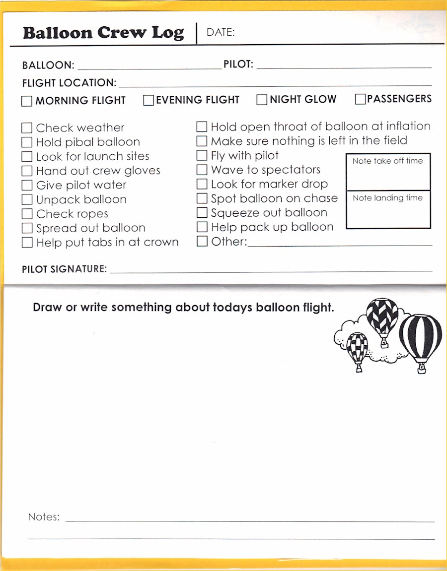 Get your junior balloonist a log book to keep track of their crew experience.  This is a great log book for our younger balloonists.