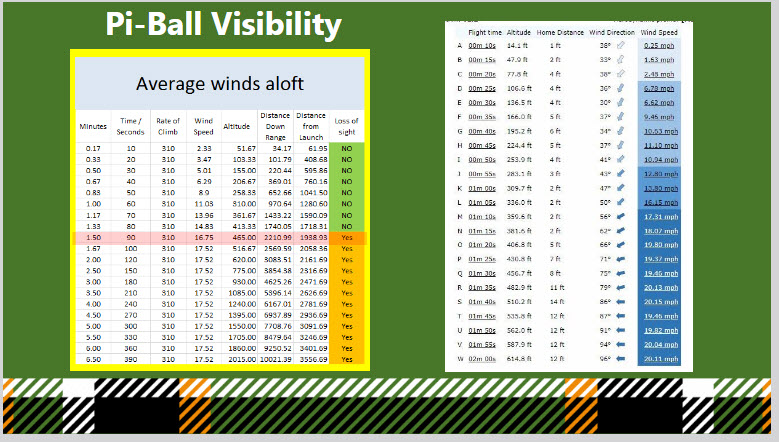 - Charts showing the altitude of a Pi-Ball in different wind conditions.